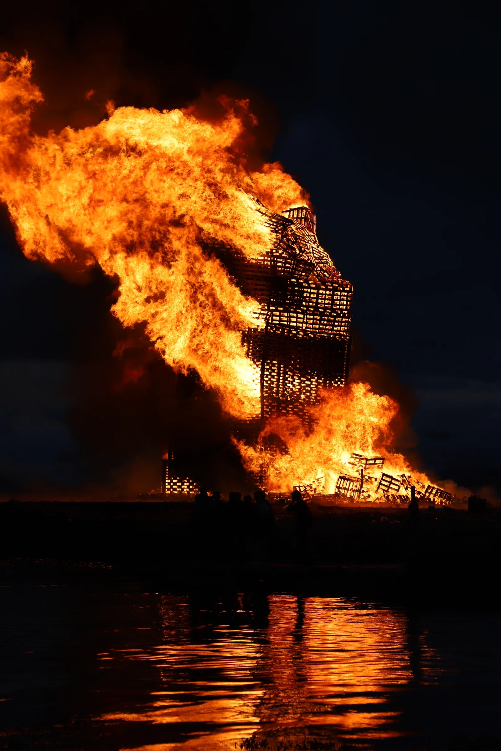This is a large bonfire that in 2016, took the world record with a hight of 47.7meters. No machinery is used when building the bonfire. It is built by hand and a strong teamwork. The midsummer-bonfire, in Norwegian Sankthansaften, is one of the oldest bonfire celebrations here in Norway. It was believed that the flames would protect from evil spirits, wich according to the old folklore, where more active this day.